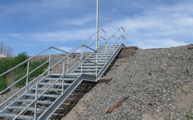 The Bright Industrial Stair Systems for Right-of-Way Applications are custom-built to provide right-of-way access to railroad buildings in steep terrain or with limited access.